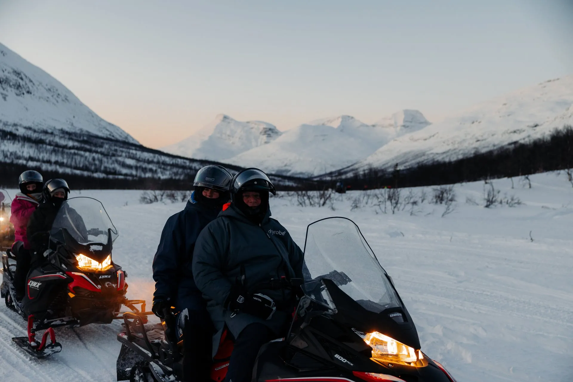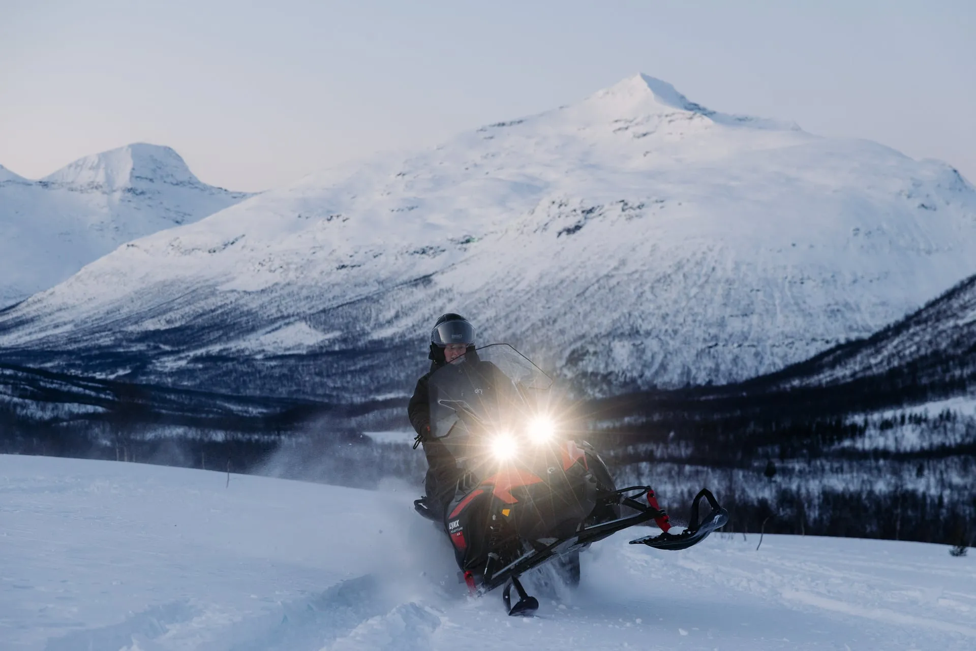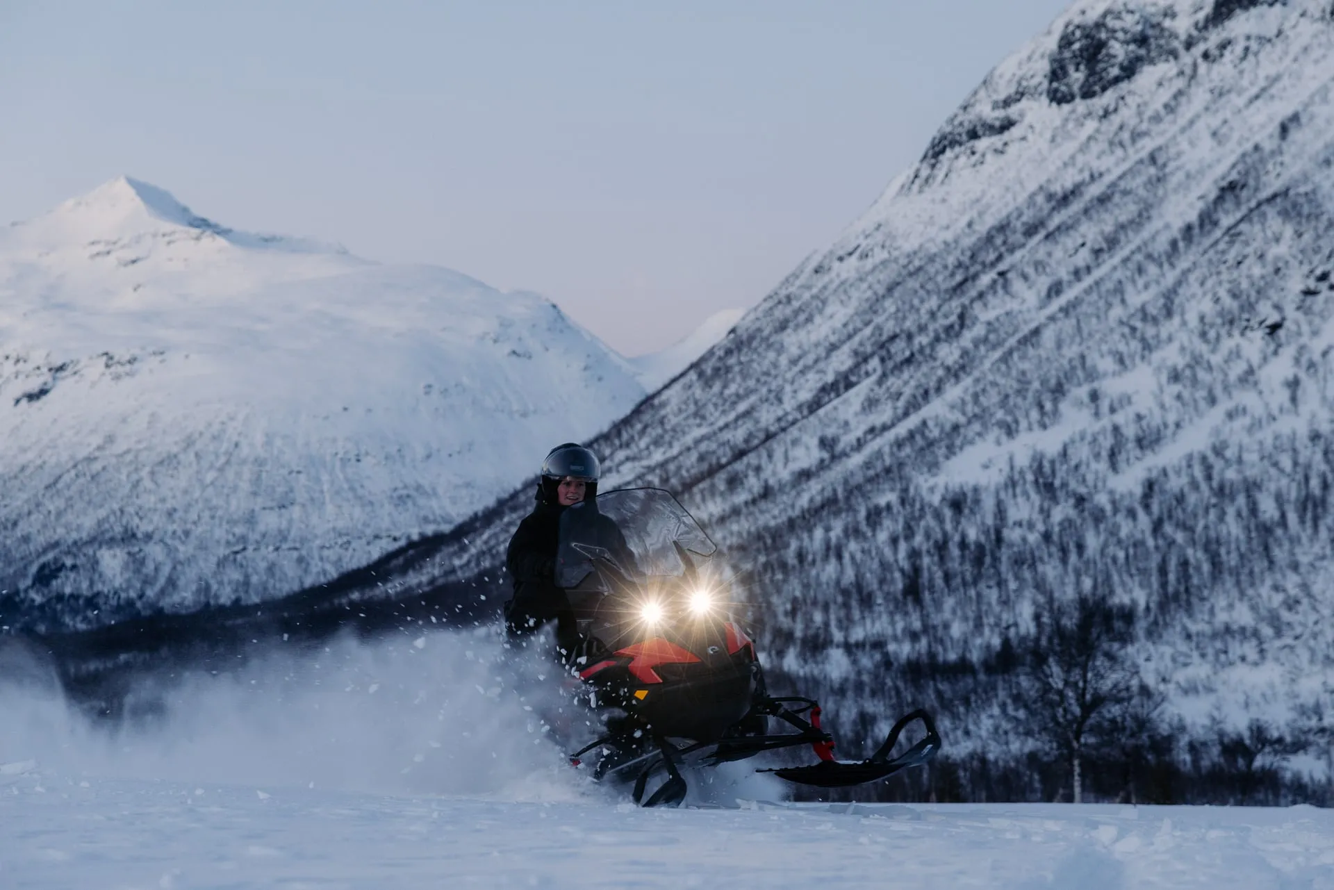 We invite you to join us in a fun varied terrain snowmobile safari there where locals drive. You will get to explore a nature area outside of Tromsø with great views of the arctic snow-covered mountains.