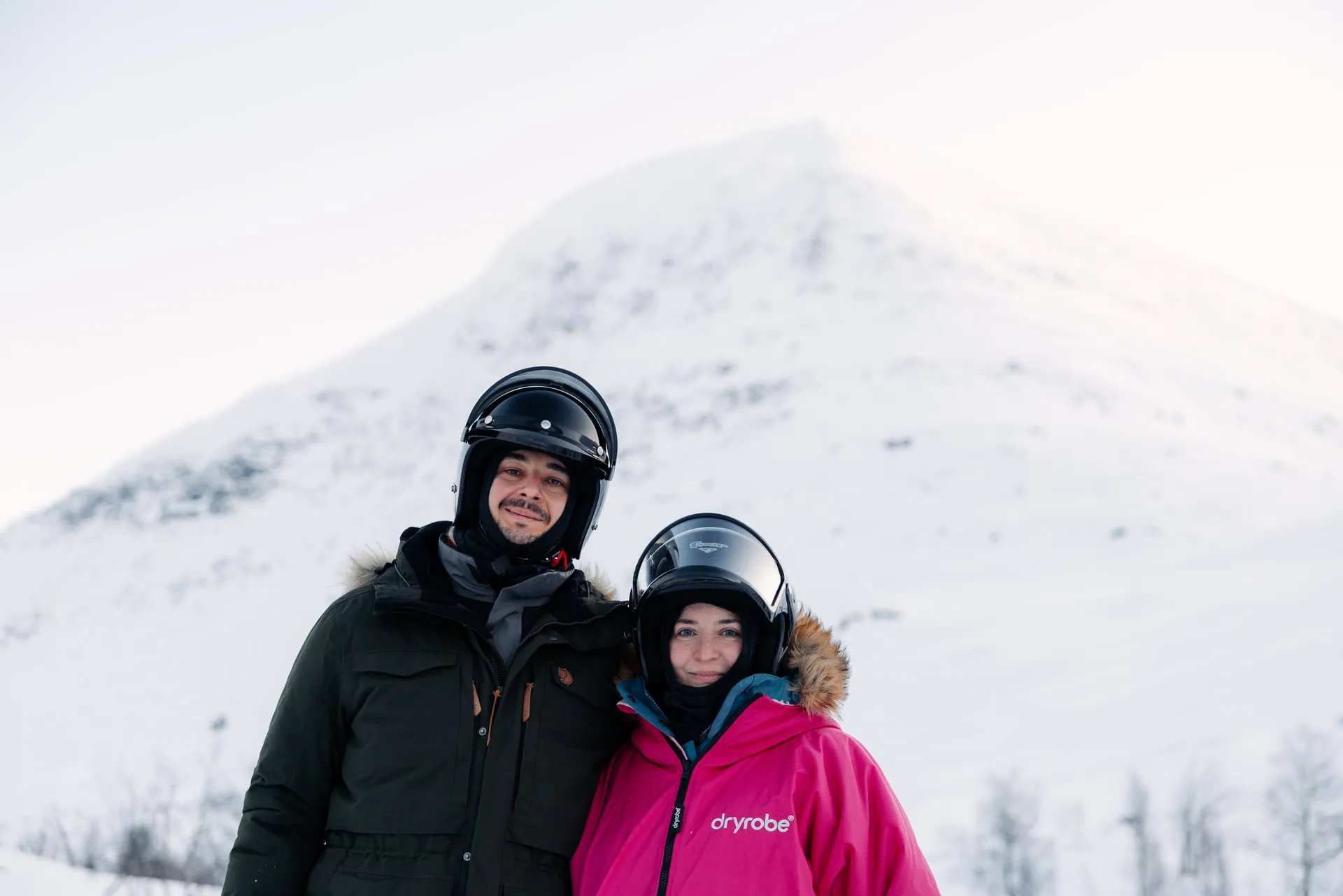 Upon arrival at Basecamp, we dress in warm winter gear and begin the adventure with safety instructions and a practical demonstration. It is then time to follow our 20* km snowmobiling track that leads you to the snow-covered mountains. We will stop during the trip to take photos and play in the snow. You will drive in pairs with one driver and one passenger per snowmobile and plenty of opportunities to switch places during the two-hour snowmobiling adventure.